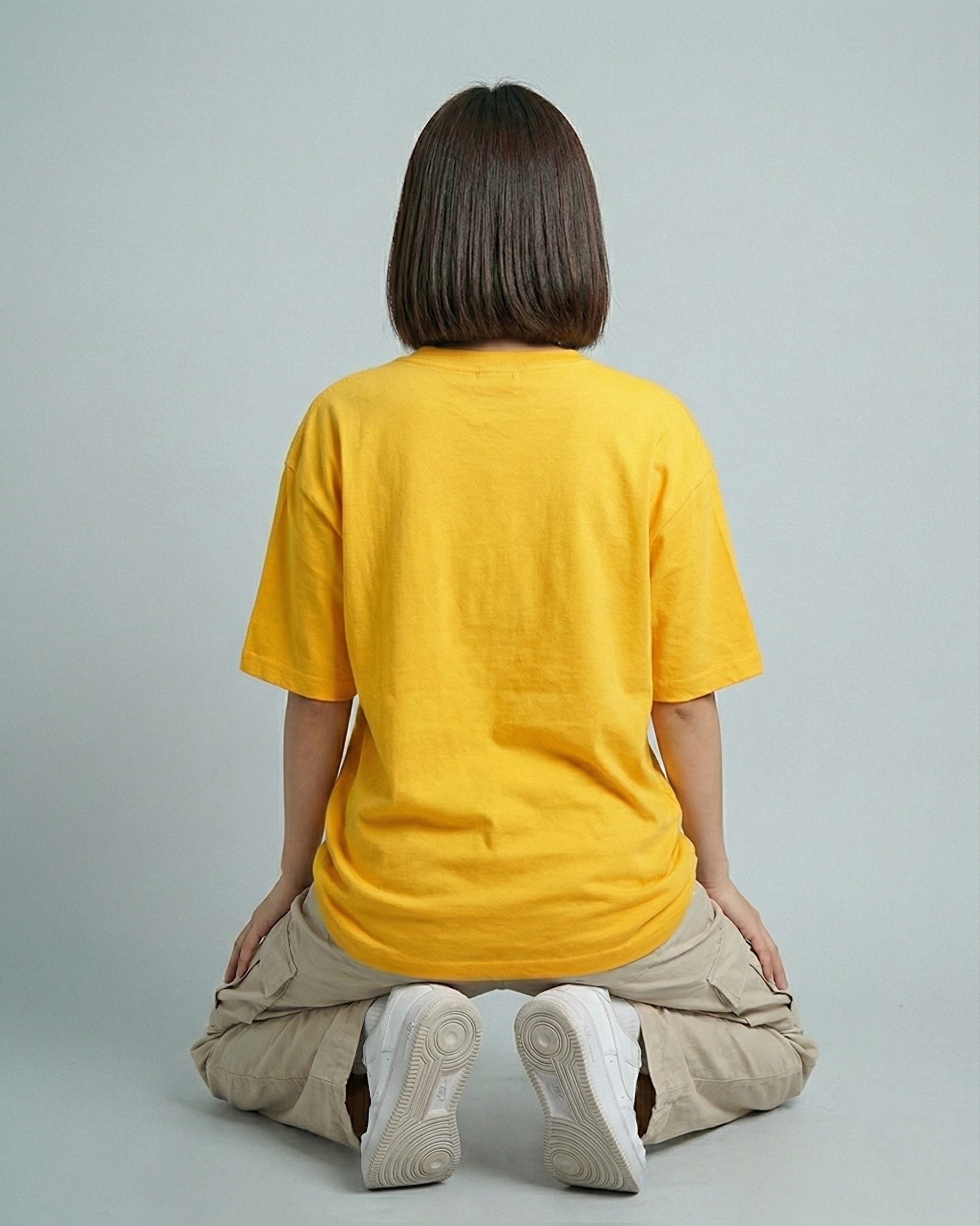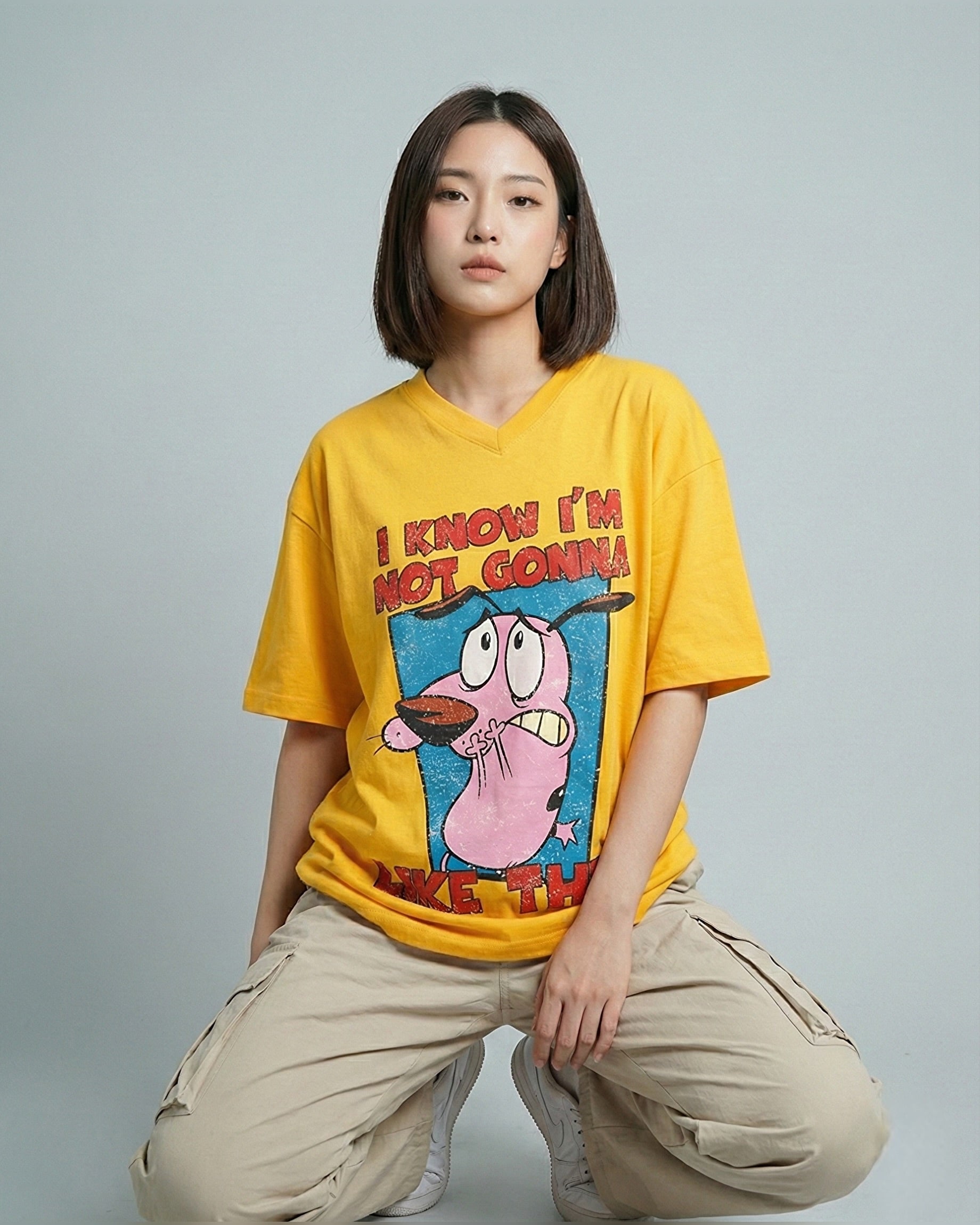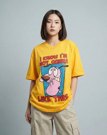 Courage Dog Graphic Vneck Drop Shoulder Oversized Tee Yellow