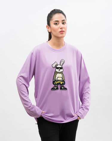 Roger Rabbit Embroidered Patched Long Sleeves Oversized Tee Lavender