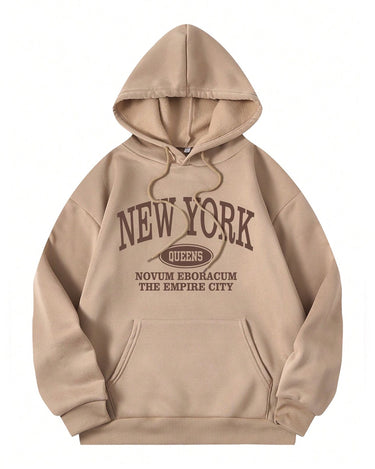 New York Graphic Oversized Pullover Hood Sand