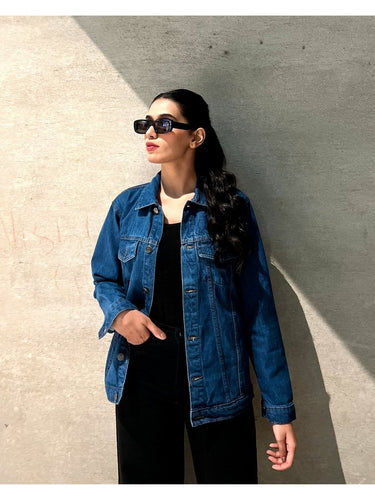 Explore retro style with this sky blue, denim jacket. The medium wash design and elastic hem make it a wardrobe favourite, Look and feel your best with a jacket that expresses your love for vintage fashion.