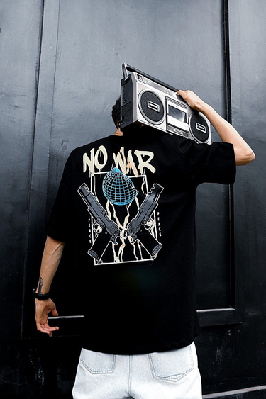 Experience ultimate comfort and style with the Make Peace No War Drop Shoulder T-shirt from Bahu brand. Made with high quality cotton fabric and featuring a high density dtf print on the front and back, this shirt combines fashion and functionality for a perfect fit.