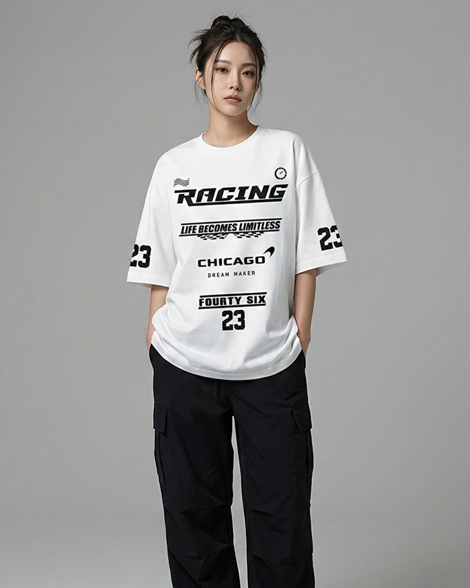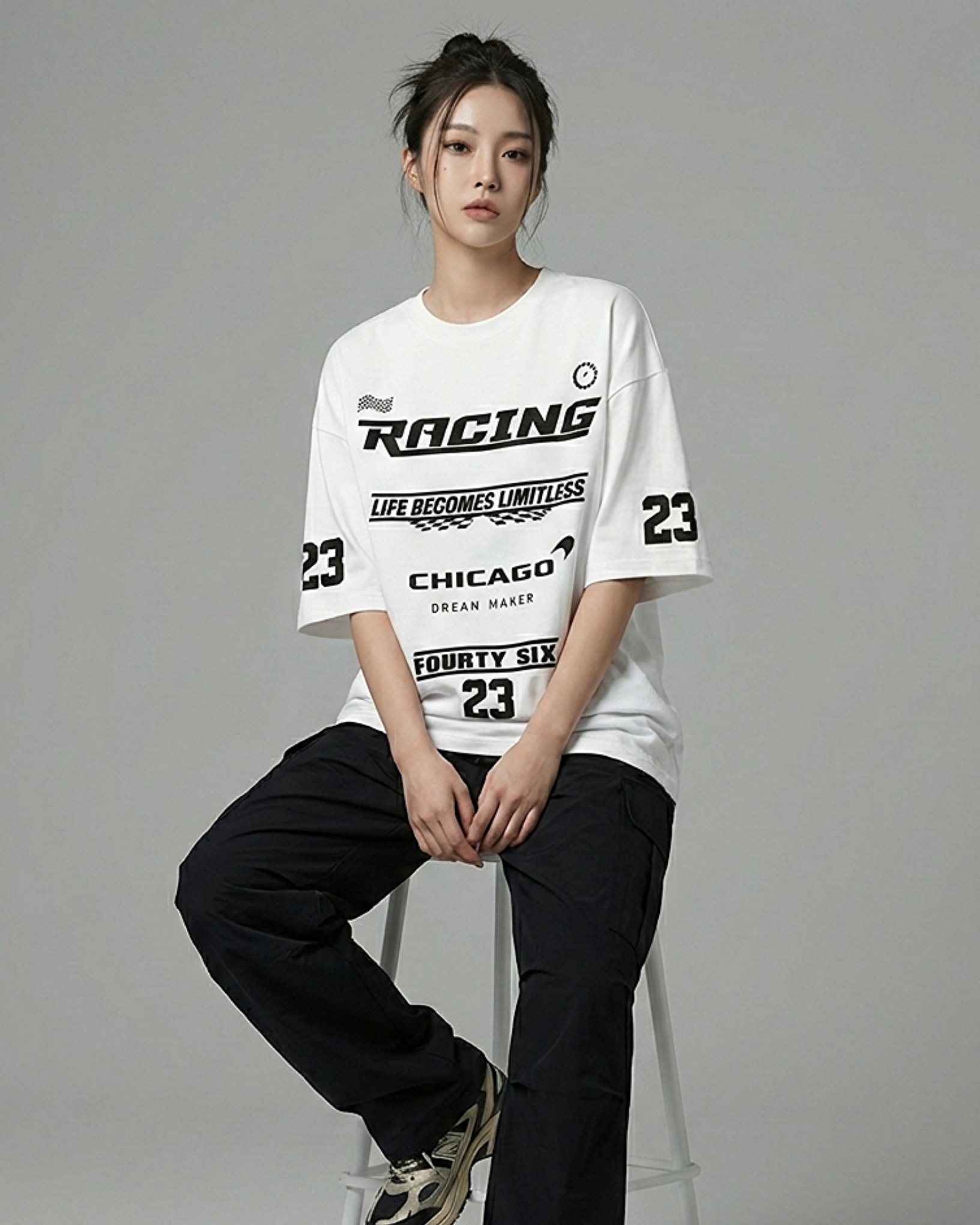 Team FR Dream Maker Chicago Graphic Drop Shoulder Oversized T-shirt White