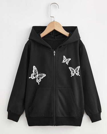 Butterfly Graphic Pull Over Zipper Hood Black