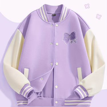 Lavender Graphic Button Down Baseball Varsity Bomber Jacket