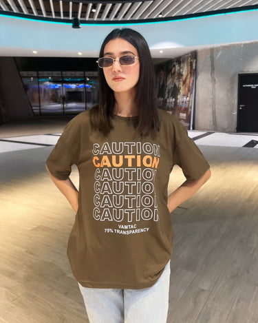 Caution Graphic Drop Shoulder Oversized T-shirt