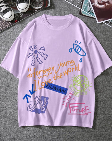 Love The World Graphic Drop Shoulder Oversized T-shirt Lavender