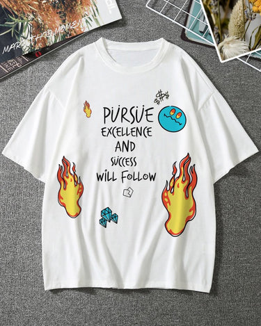Pursue Excellence Graphic Drop Shoulder Oversized T-shirt White
