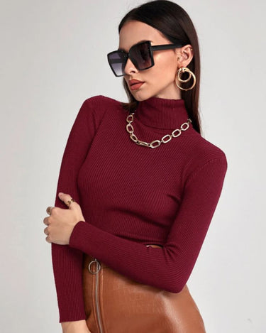 Turtleneck Ribbed Knit Sweater Maroon
