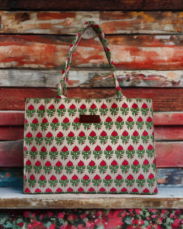 Tulip Floral Canvas Cotton Quilted Tote Bag