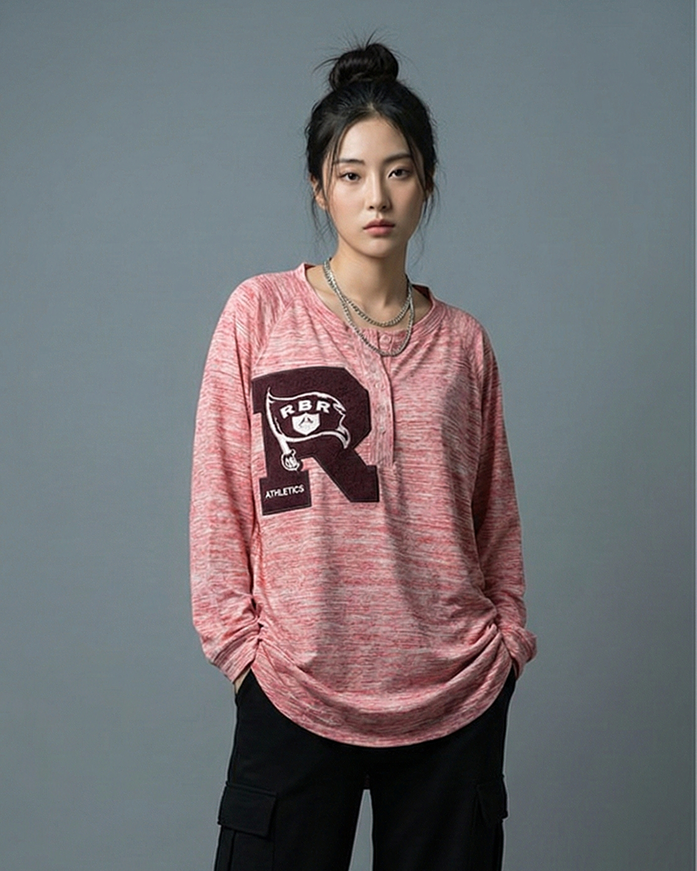 The Henley Style R Athletic Long Sleeve Oversized Tee features a distressed look, adding a unique aesthetic appeal. Its oversized fit ensures comfort and freedom of movement, while the long sleeves provide adequate coverage for various weather conditions. Designed for versatility, it caters to casual settings and athletic activities alike.