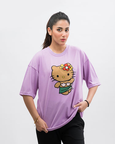 Hi Kitty Embroidered Patched Drop Shoulder Oversized Tee Lavender