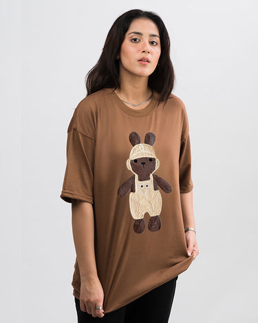 Labubu Embroidered Patched Drop Shoulder Oversized Tee Brownie