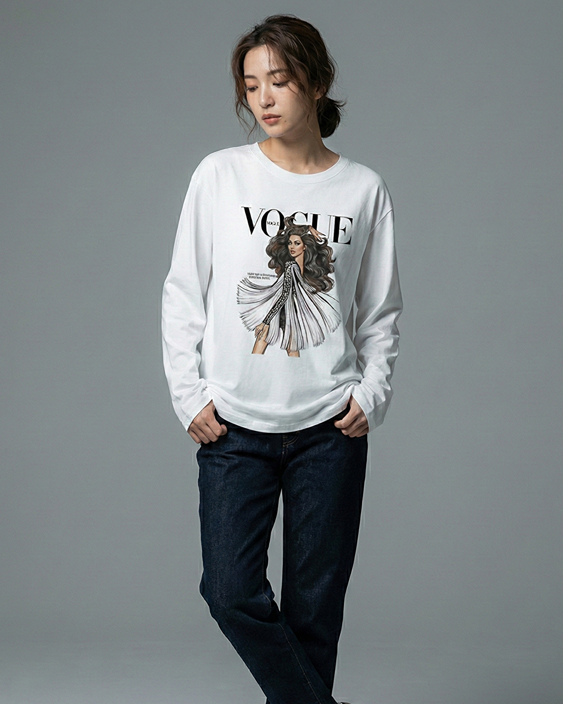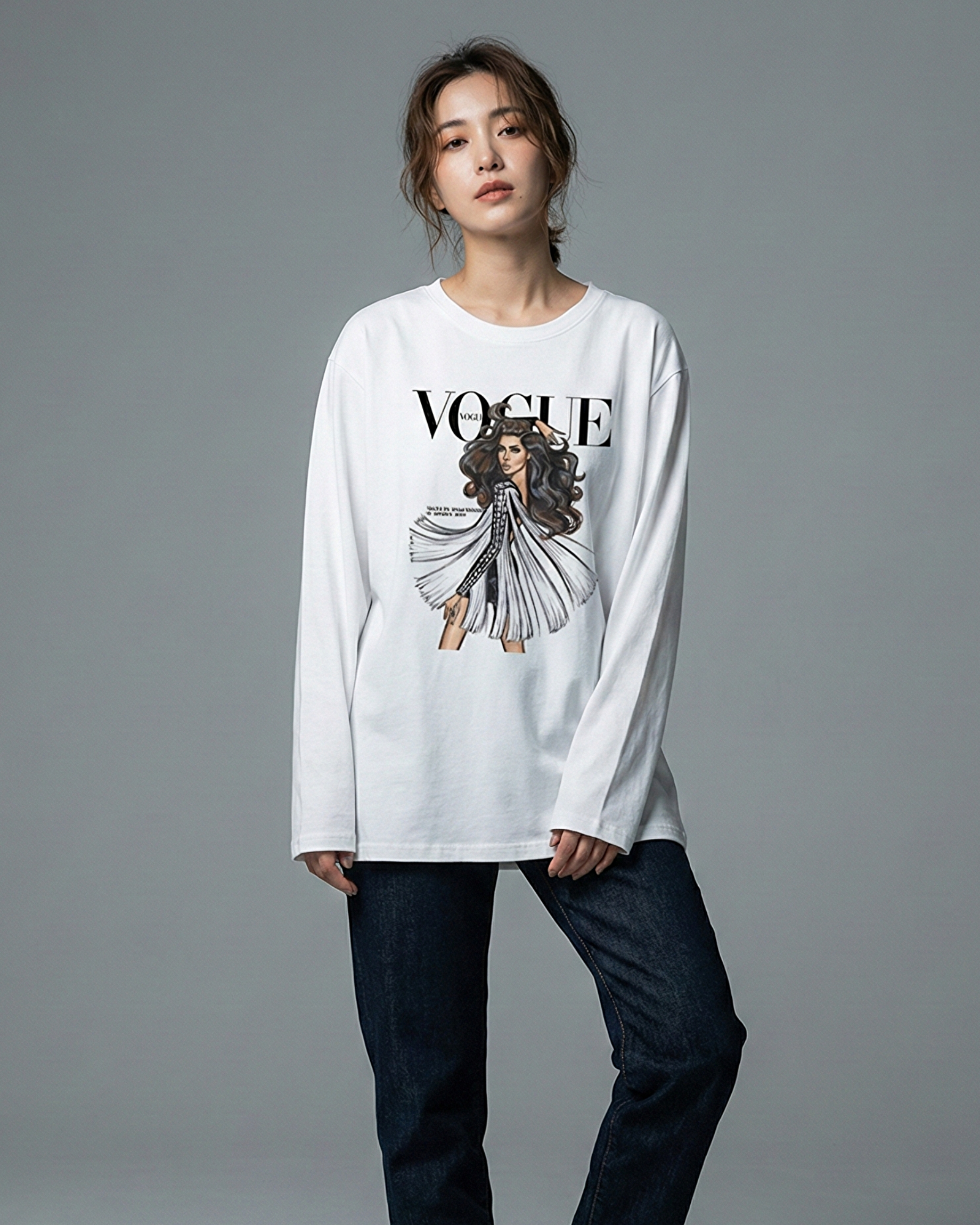 Vogue Girl Graphic Long Sleeve Oversized Tee