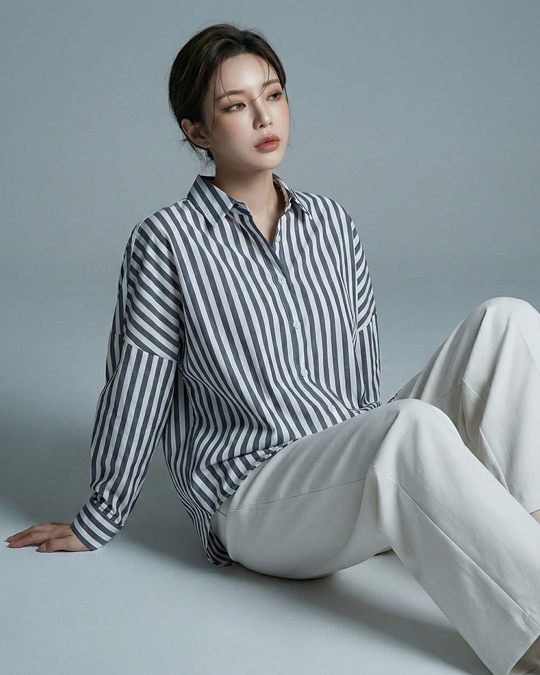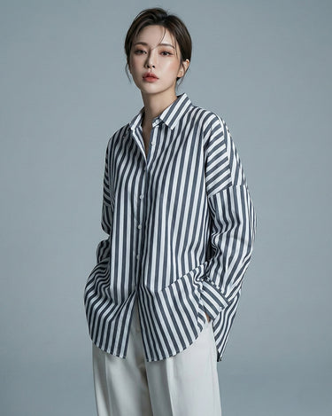 Button Up Black White Striped Oversized Shirt
