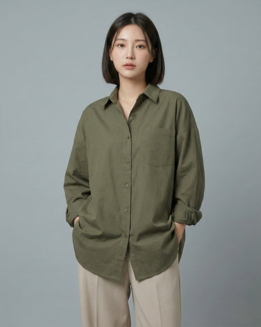 Introducing our Button Up Oversized Shirt. Made with 100% poplin cotton, this shirt provides maximum comfort while keeping you stylishly oversized. Perfect for any occasion, this long sleeve shirt is a must-have for your wardrobe. Upgrade your look with this versatile piece today.