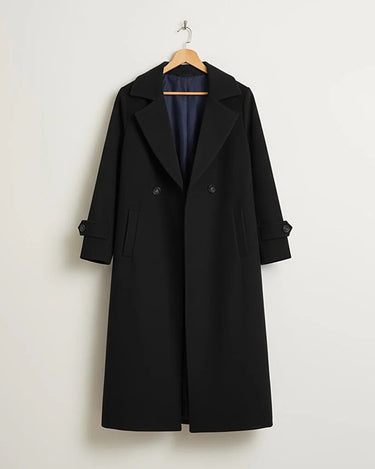 Expertly crafted with a warm fleece fabric, the Classic Old Money Chic Long Coat in black exudes effortless style. Perfect for any occasion, this coat boasts a classic look that will keep you warm and stylish. Elevate your winter wardrobe with this timeless piece.