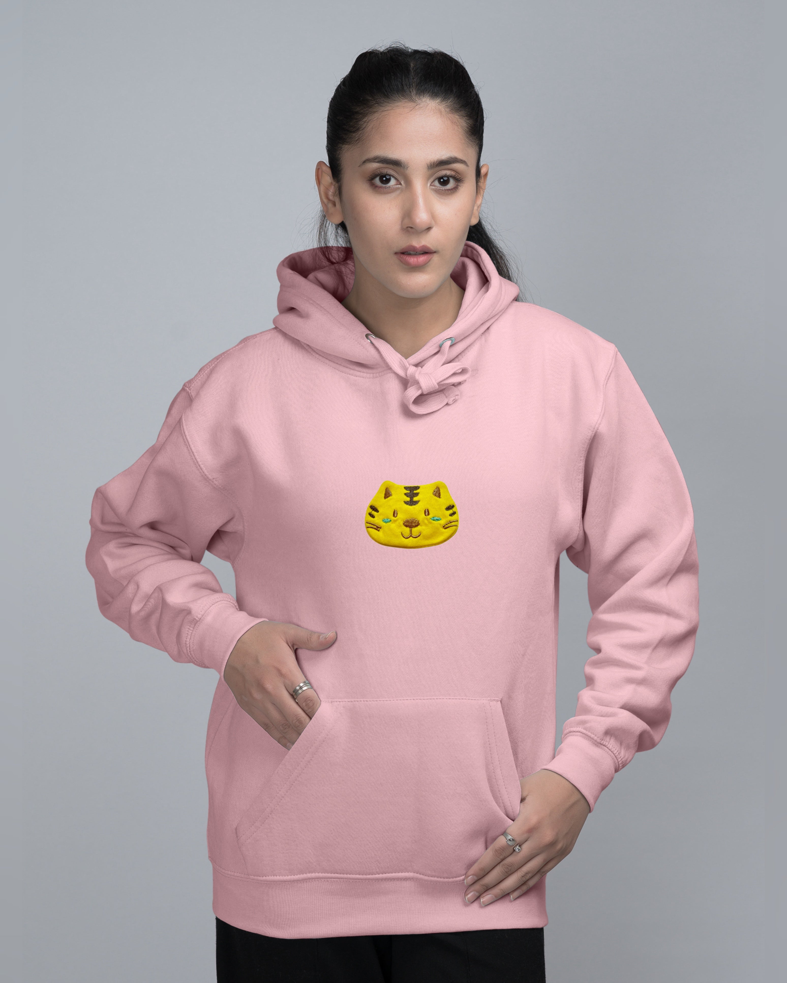 Kitty Embroidered Patched Oversized Pullover Hood