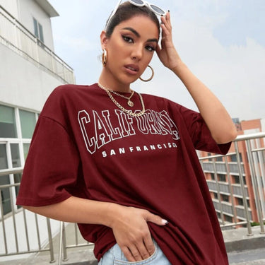 California Graphic Drop Shoulder Oversized Tee Mahroon