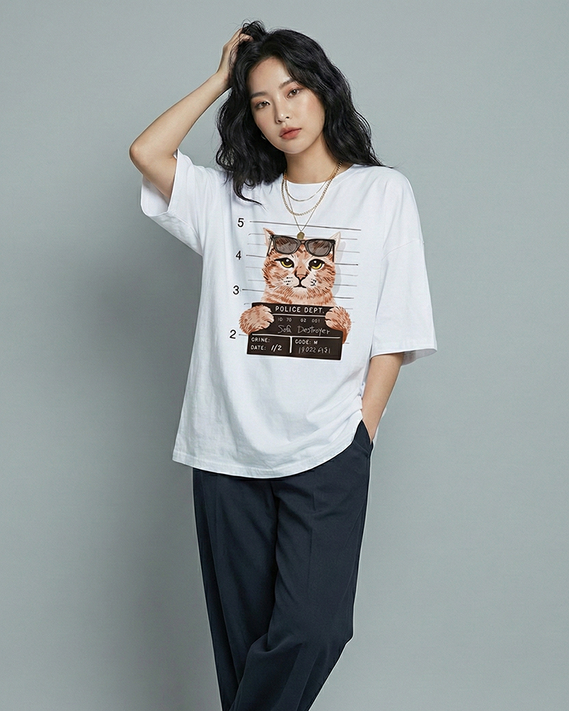 Cat Mugshot Graphic Drop shoulder oversized Tee