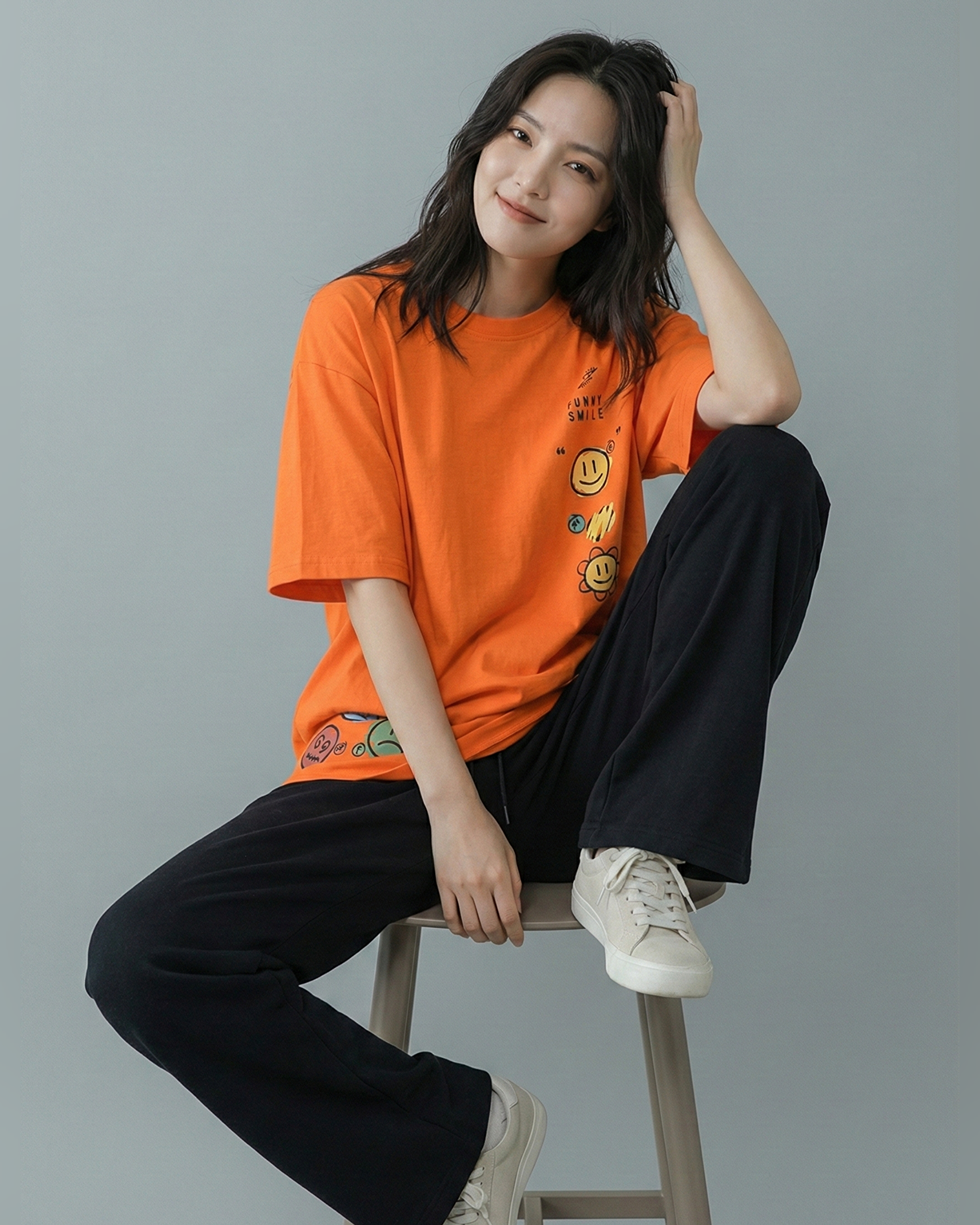 Smile Emoji Graphic Drop Shoulder Oversized Tee